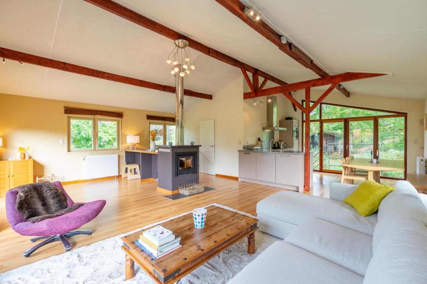 Three-Bedroom Chalet. The sauna and fireplace are the special features of this chalet. This spacious chalet includes 1 living room, 3 separate bedrooms and 2 bathrooms with a bath and a shower. Guests will find a stovetop, a refrigerator, a dishwasher and a toaster in the kitchen. The chalet also features a barbecue. Boasting a terrace with garden views, this chalet also offers a coffee machine and a TV. The unit has 5 beds.