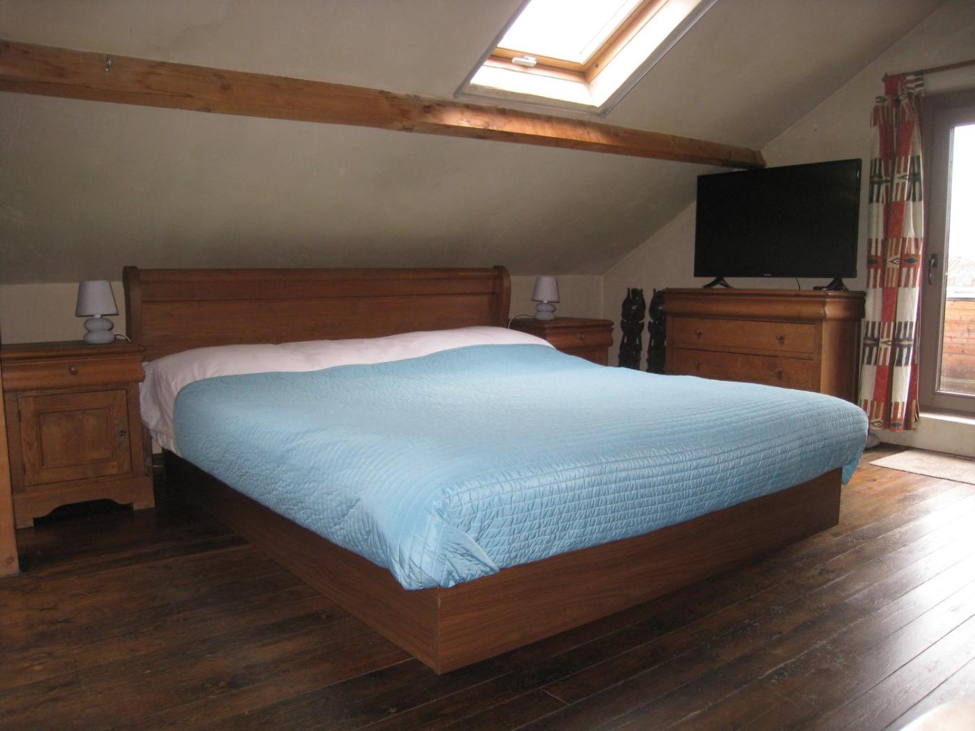 Please note that the second Queen size bed isin a space with a surface of 8 square metres and a standing height of 140 cm. The space is adjacent to the bedroom, separated by a wall, and has no door.
