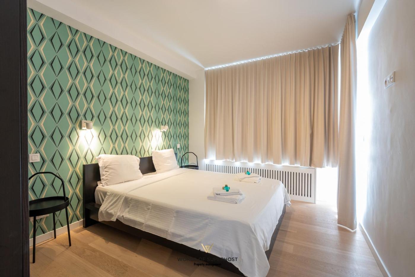 Two-Bedroom Apartment. This spacious apartment features a kitchen, a seating area, 2 separate bedrooms and 1 bathroom with a bath and a shower. The fully equipped kitchen has a refrigerator, a dishwasher, an oven and a microwave. The apartment features a washing machine, a coffee machine, heating, a flat-screen TV with streaming services, as well as city views. The unit has 4 beds.
